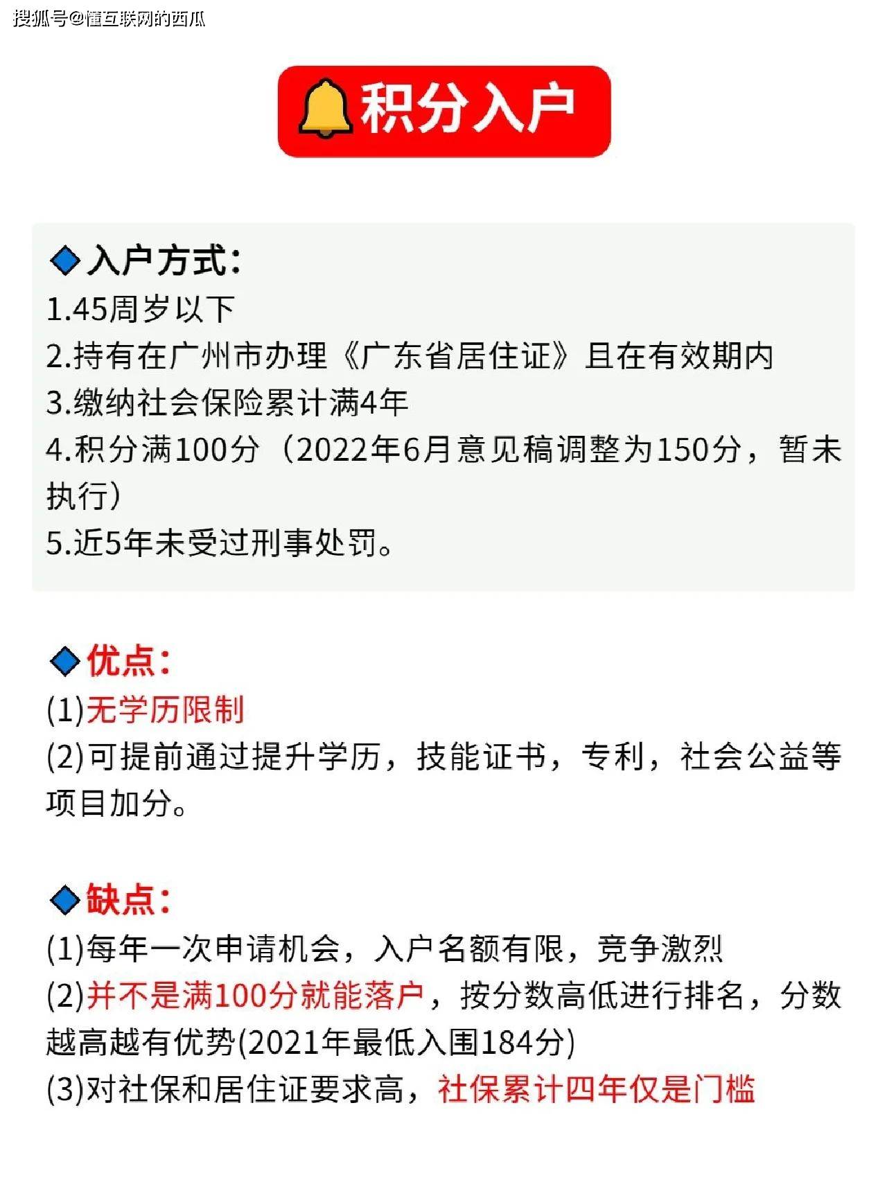 2、積分入戶:對于不符合政策性入戶條件的人群,可以通過積分入戶的方式,積分系統(tǒng)根據(jù)申請人的學歷、技能、年齡、社保等因素進行評分,達到一定分數(shù)即可申請。