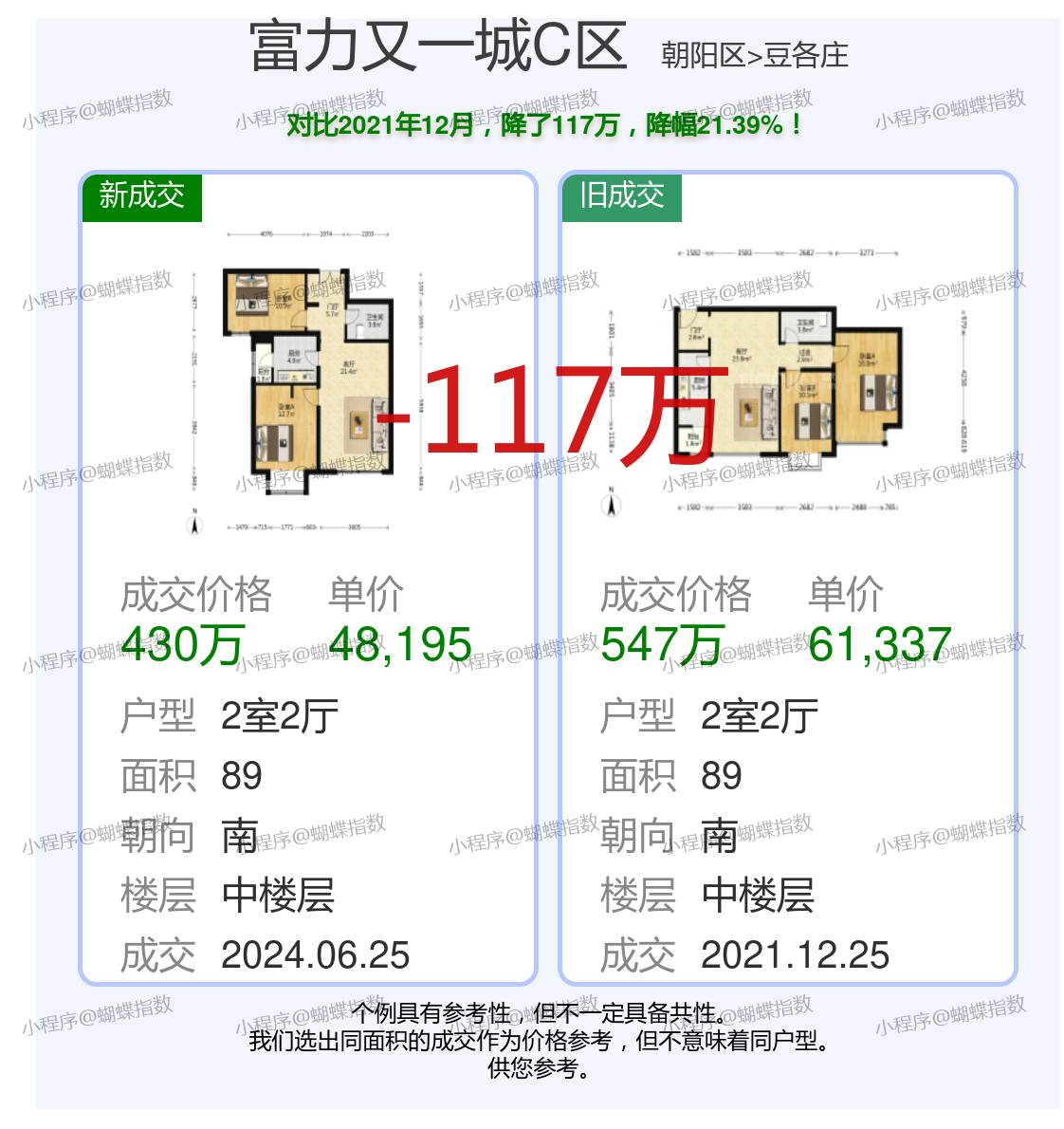 1、兩室一廳:XXXX元/平米